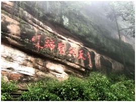 翌日,團隊輕裝簡行,分組開始了登山活動。登山途中,隊員間互幫互助、砥礪前行,期間山間下起了小雨,路面濕滑,加大了攀登難度,但經過三個多小時的跋涉,終于登頂。俗話說“青城天下幽”,舉目望去,薄霧綿延、林木蔥郁,一派清幽。大家相視一笑,欣賞著這難得景致、體會著成功登頂的喜悅。